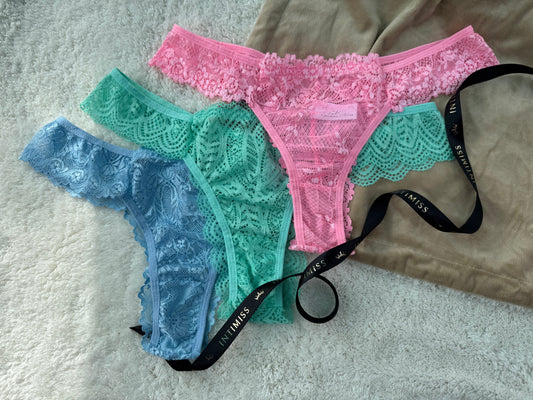 5-Pack - Thong Panties with Lace Side - Assorted Colors